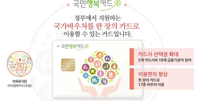 국민행복카드는 정부에서 지원하는 국가바우처 카드로써 임신 및 출산, 육아, 청소년 생리대 지원 등 다양한 항목의 지원금을 한 장의 카드로 받아 볼 수 있습니다.