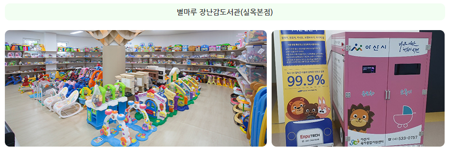 아산시육아종합지원센터는 실옥본점 별마루 장난감 도서관과 배방분소 꿈꾸는 장난감 도서관 이렇게 두 지점을 운영하고 있습니다.