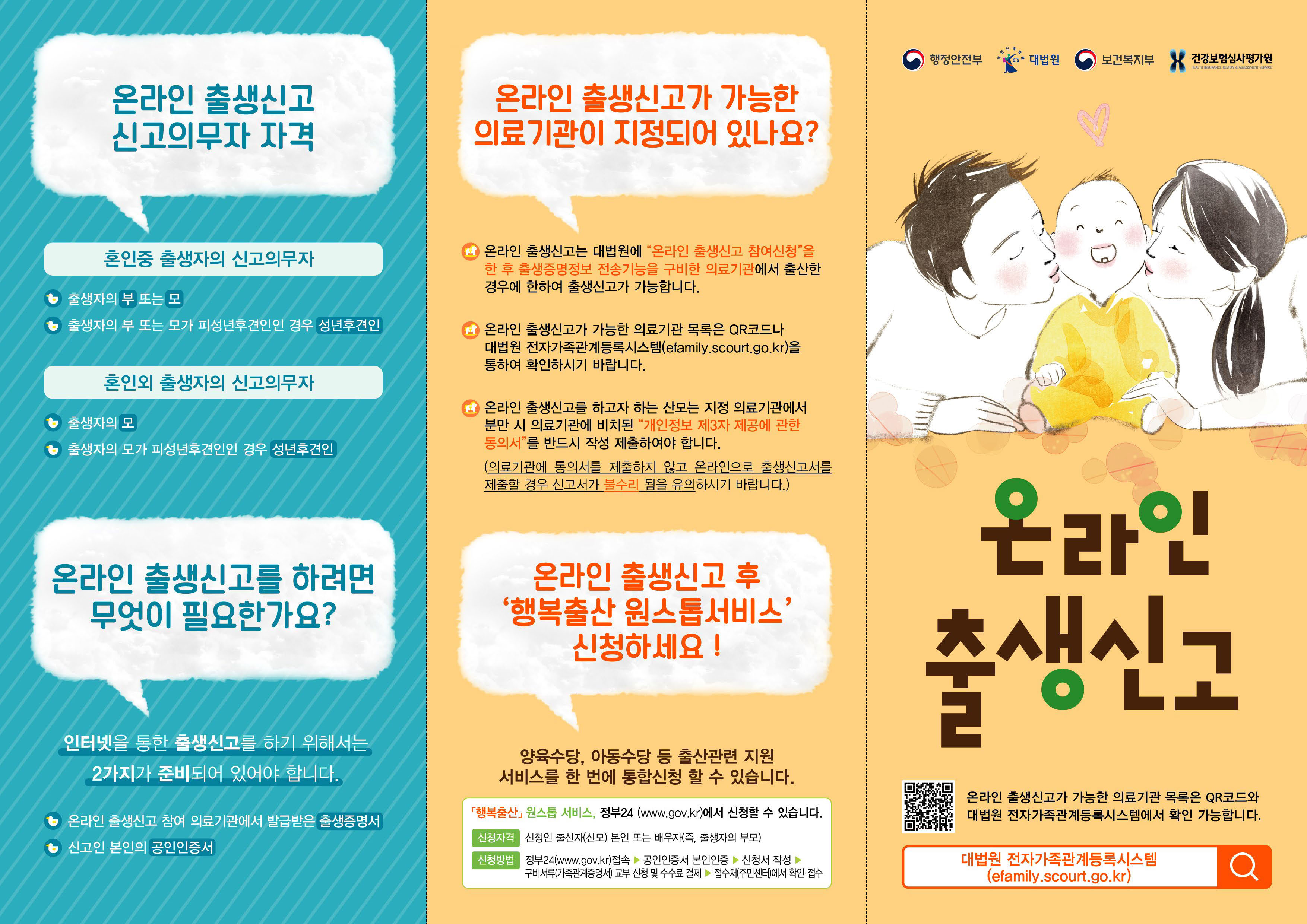 관공서를 방문해야하는 기존 방식과는 달리 인터넷이 사용 가능한 집 또는 회사 등에서 편리하게 온라인으로 출생신고를 할 수 있는 서비스를 말합니다.