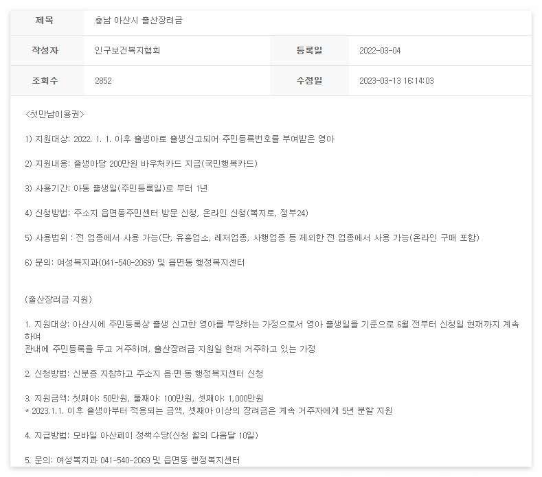 제가 살고 있는 아산시는 지역상품권 형태로 자녀 수에 따라 차등으로 지급해주고 있습니다. 기타 자세한 내용은 해당 출생지역의 행정복지센터로 문의해 보시길 추천드립니다.